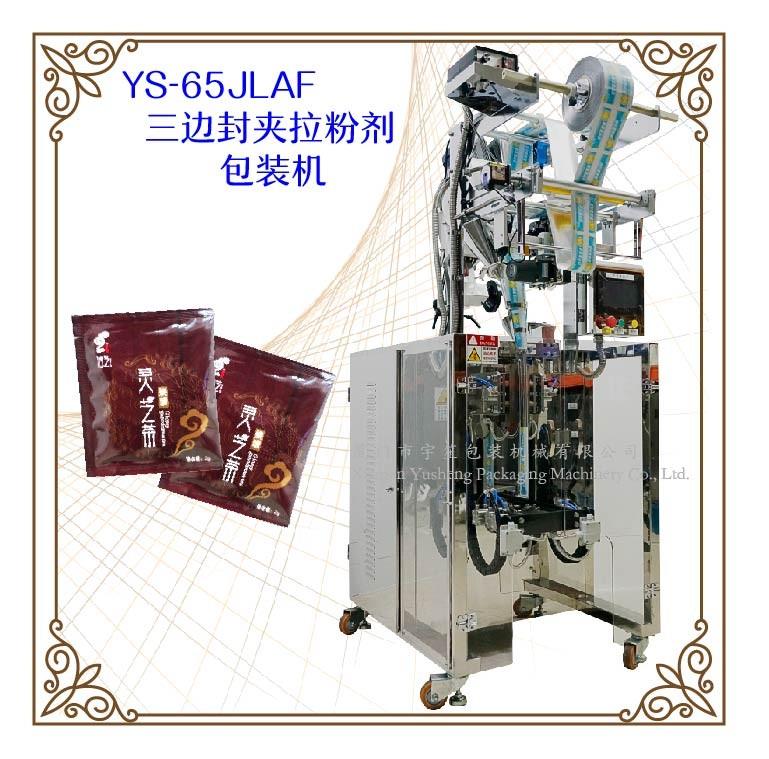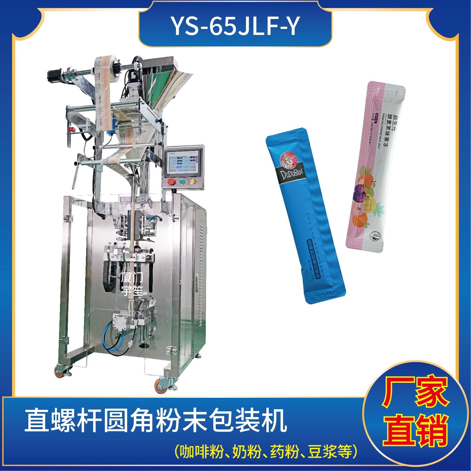 YS-65JLBF-Y 夾拉圓角粉劑包裝機特 點 1、適用于食品、醫(yī)藥、化工、化妝品行業(yè)中粉劑等物品的計量包裝。.2、可自動完成制袋、計量、下料、封合、分切、計數(shù)、且可根據(jù)客戶要求配置打印批號等功能。3、觸摸屏操作,PLC 控制,伺服電機控制袋長,性能穩(wěn)定、調整方便、檢測準確。智能式溫控儀,PID調節(jié),保證將溫度的誤差范…