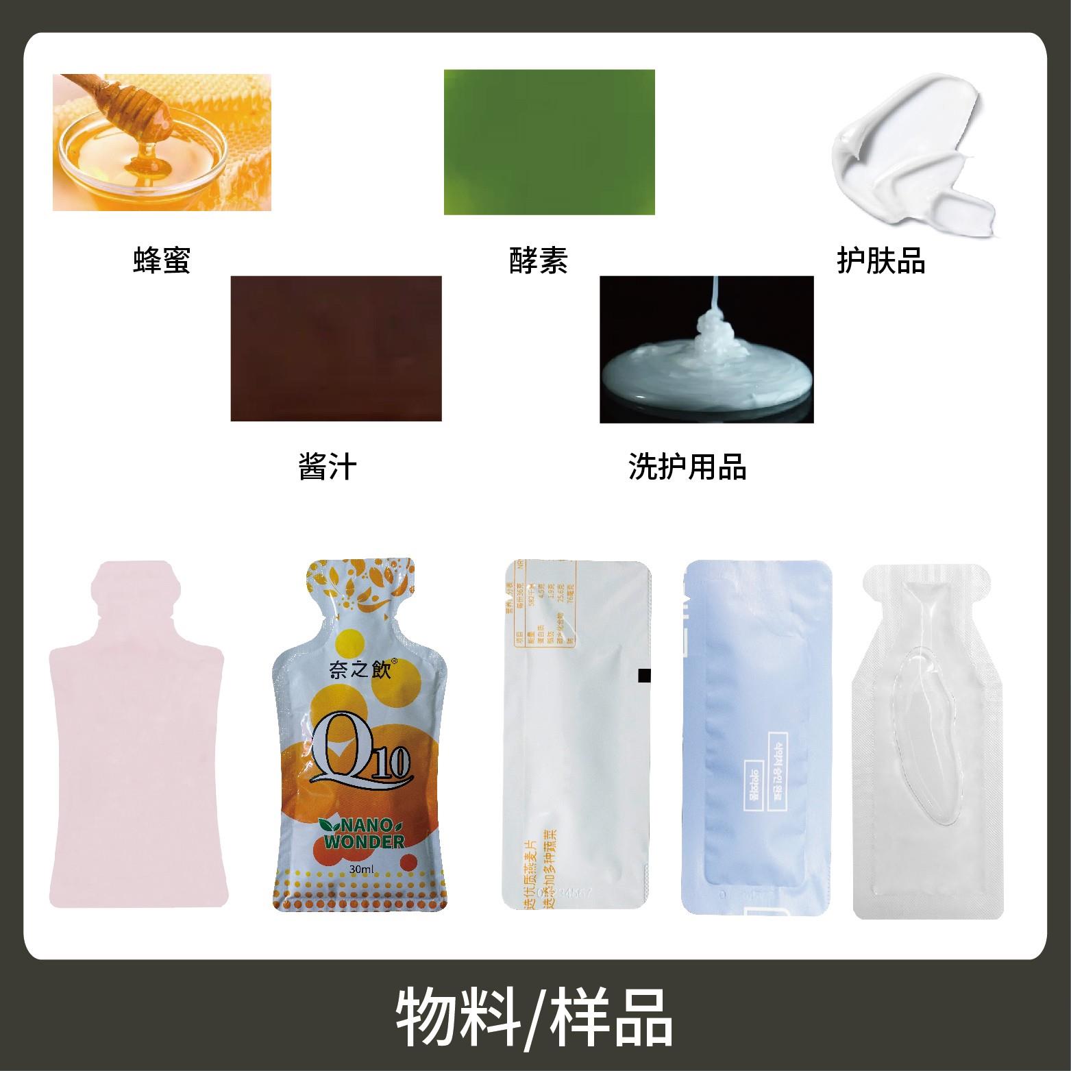 適用于食品、醫(yī)藥、化工、化妝品行業(yè)中液體、醬料等物品的異形袋計(jì)量包裝。