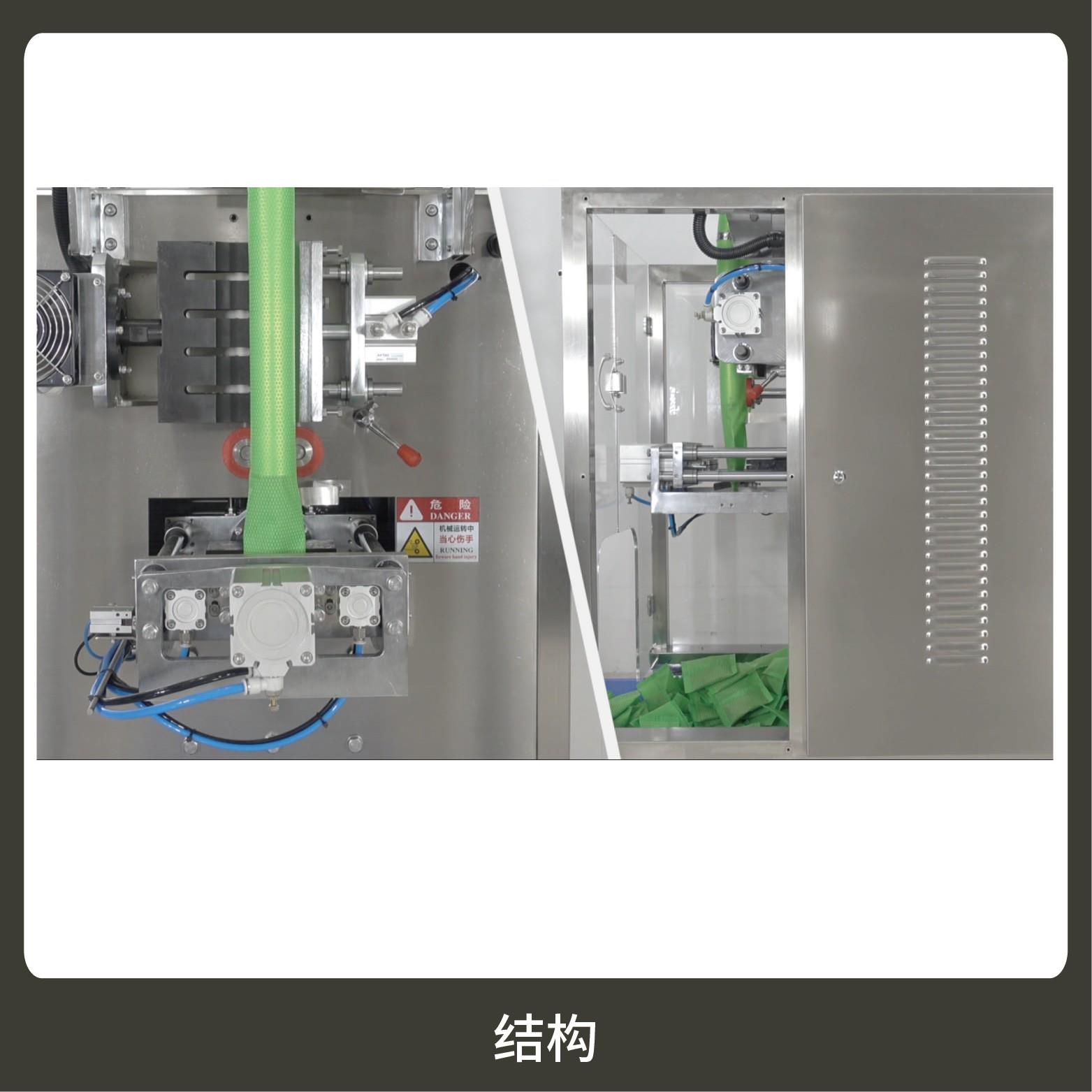 3、觸摸屏操作,PLC 控制,驅(qū)動步進電機控制袋長,性能穩(wěn)定、調(diào)整方便、檢測準確。智能式溫控儀,PID調(diào)節(jié),保證將溫度的誤差范圍控制在1℃以內(nèi)。